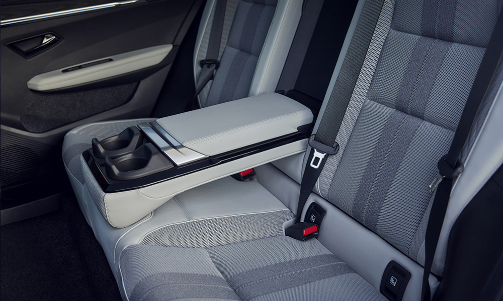 Takapenkkiläisiä ilahduttaa myös oivaltava ingenious-kyynärnoja. Siinä on kaksi esiin kääntyvää tukea, joihin voi helposti kiinnittää tabletin tai älypuhelimen. Älylaitteille on myös kaksi USB-C -porttia lataamista varten, ja kun niitä ei käytetä, voi ne pistää säilöön kyynärnojan sisään.