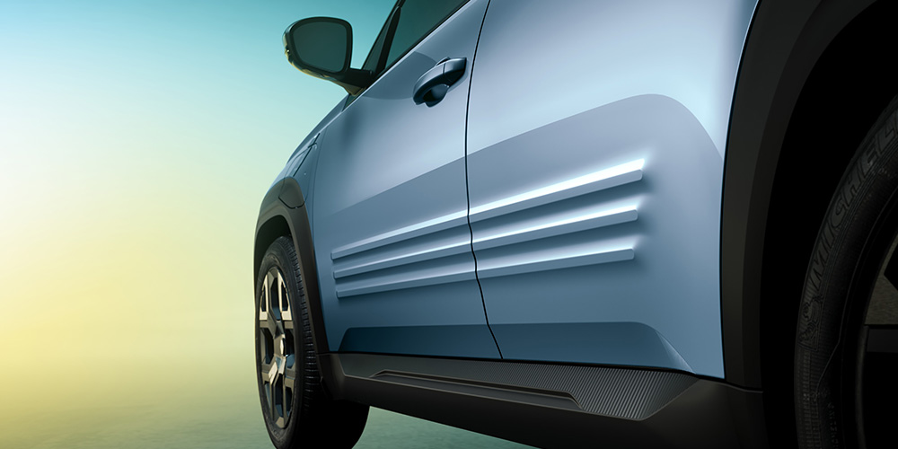 Takasivuikkunat ovat edelleen tunnusomainen osa Renault 4 perintöä ja ne laajentavat ikkunapinta-alaa. Samoin kolme rinnakkaista, korin kylkiä pitkin kulkevaa muotoiltua linjaa muistuttavat 4L-sukupolvien ilmeestä.
