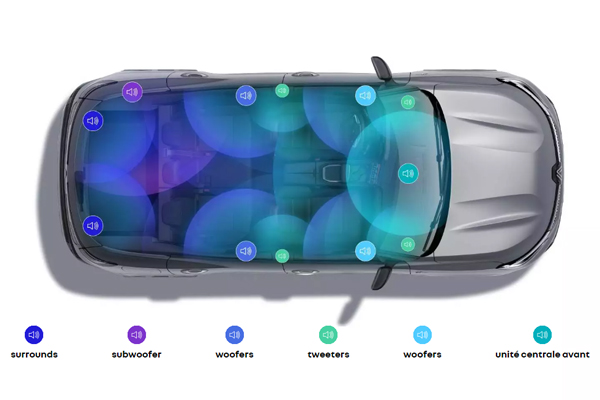 Uuden korkeatasoisen Harman Kardon -äänentoistojärjestelmän ansiosta haluat ajaa yhä pidemmälle vain nauttiaksesi laadukkaasta äänentoistosta. Äänimaailma on suunniteltu tarjoamaan musiikkielämyksiä jokaisella autossa olijalle istuinpaikasta riippumatta, sijoittamalla kaiuttimia ympäri autoa. Mukaansatempaava, muokattava sekä helppokäyttöinen äänentoisto. Saatavilla iconic esprit Alpine -varustelutasoon.