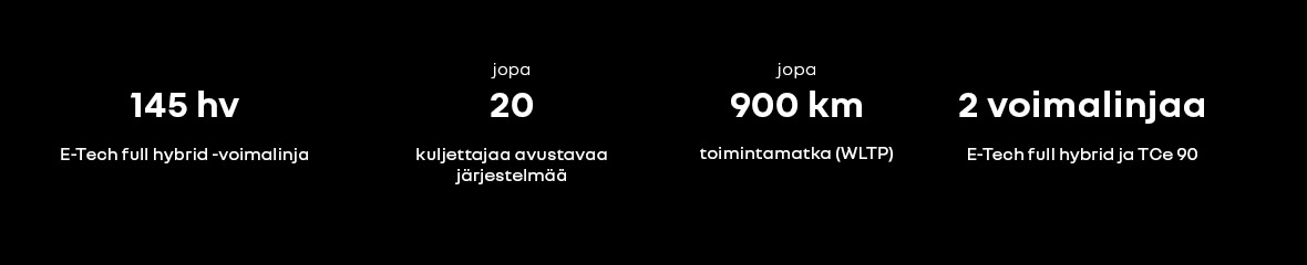 Ajokokemus tuoreella voimalla. Polttoainetehokkuutta ja hiljaisuutta. Tämä hybridi-voimalinja on sekä reagoiva että tehokas.