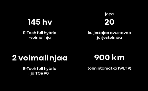 Renaultin human first -ohjelma tarjoaa turvaksesi jopa 20 edistyksellistä ja innovatiivista ajoavustinjärjestelmää.