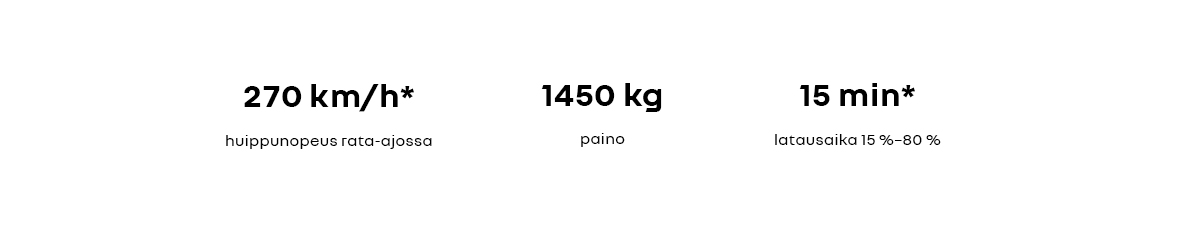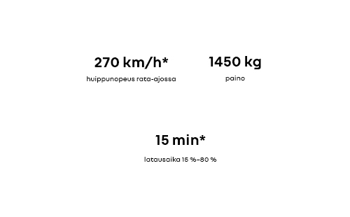 Kaksi takapyörien sisälle sijoitettua sähkömoottoria tuottavat välittömästi käyttöön saatavan kokonaisväännön, joka on huimat 4800 Nm. Rata-ajossa voit nauttia ”race”-ajotilasta ja sen ”drift assist” -toiminnosta, huippunopeuden yltäessä jopa 270 km/h*.