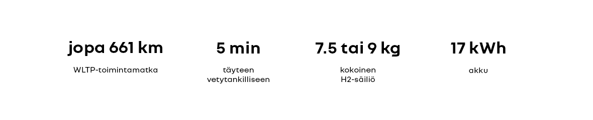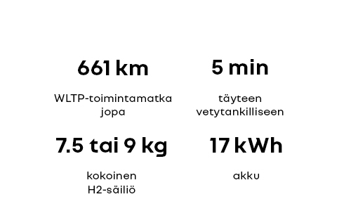 * Ilmoitetut toimintamatkat perustuvat WLTP-testeihin. Ajoaika, akun varaustila ja/tai kunto, kuljettajan ajotyyli ja ulkolämpötila vaikuttavat toimintamatkaan. Todelliset ajo-olosuhteet voivat poiketa testitulosten olosuhteista.