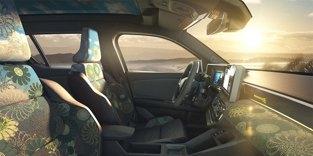 Persoonallista tyyliä uuteen Renault 4 E-Tech electriciin tuo mahdollisuus valita plein sud™ -avattava kangaskatto, joka on suunniteltu alkuperäisen Renault 4 Plein Airin hengessä. Yhdessä kumppanien Webaston ja Haartzin kanssa suunniteltu plein sud™ (joka tarkoittaa etelään) kangaskatto on kevyt ja laadukas. Siitä haluttiin tehdä yhtä tiivis ja hiljainen kuin vakiomallin teräskatto. Kangas valittiin materiaaliksi, sillä sähköautossa jokainen kilo lasketaan.