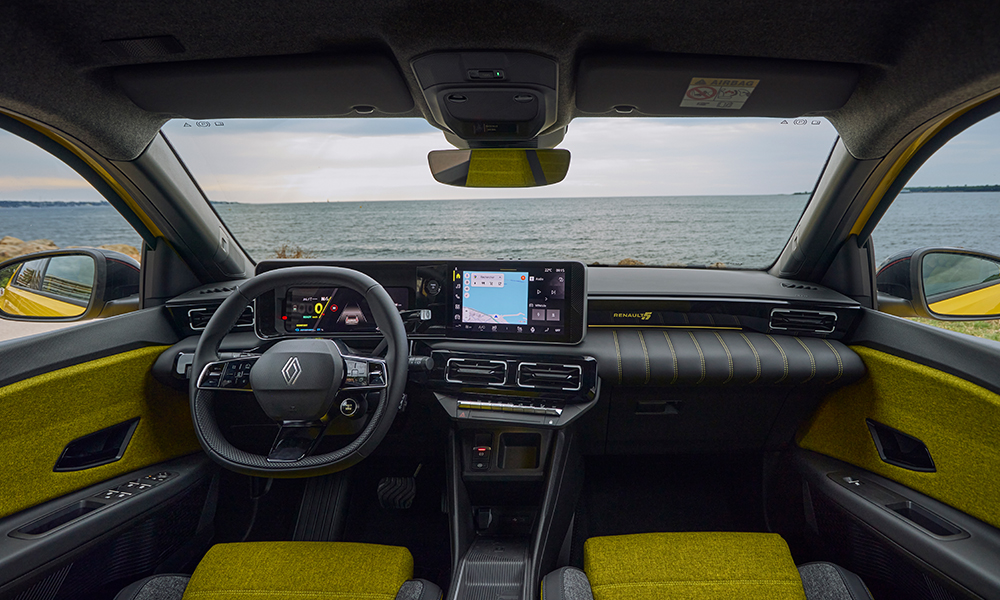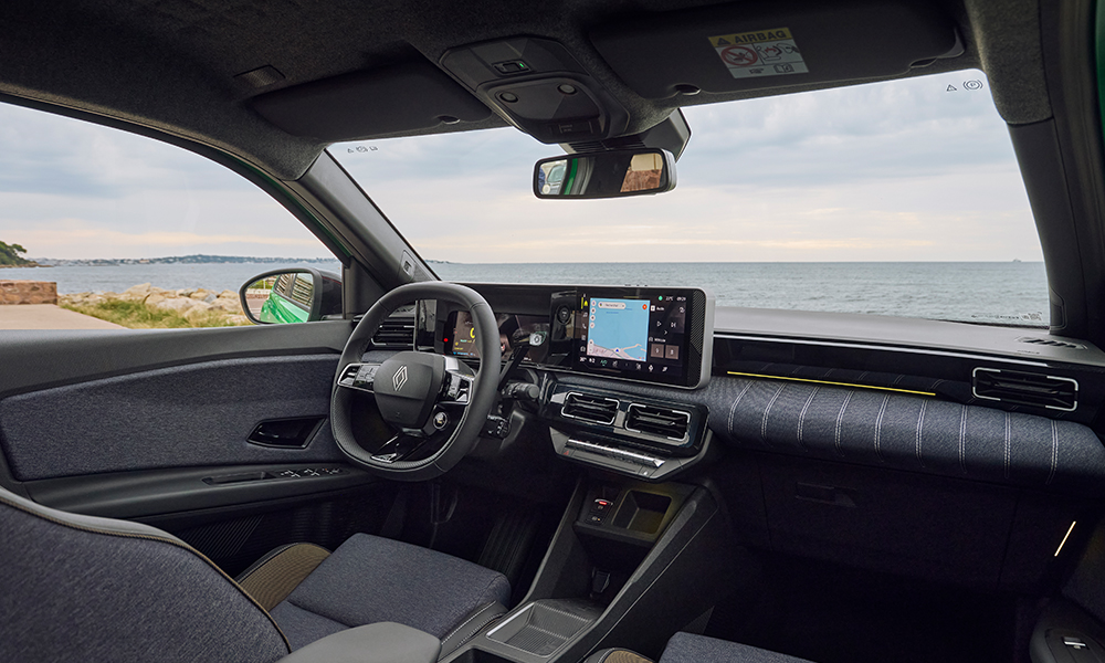 Autoon on helppo päästä, sillä älyavain avaa ovet ja auto on valmis virran päälle kytkemistä varten. Ohjaamossa merkittävää ovat auton näyttöjen grafiikat ja äänimaailma, joista jälkimmäisen Renault on suunnitellut yhteistyössä musiikin ja äänen Ircam-instituutin sekä säveltäjä Jean-Michel Jarren kanssa. Jälkimmäinen oli aikoinaan elektronisen musiikin pioneeri ja intohimoinen uuden tekniikan harrastaja. Hän on kehittänyt autossa sisällä kuuluvat äänimaailmat sekä jalankulkijoiden varoitusäänen, joka toimii alle 30 km/h nopeudessa.