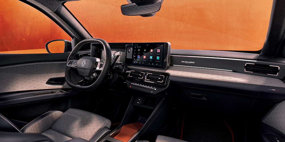 Ulkonäkö korostaa Roland-Garrosin perinteitä kiiltävänmustilla, timanttileikatuilla 18‑tuumaisilla electro‑vanteilla sekä etuoviin sijoitetuilla Roland-Garros merkinnöillä, joiden muotokieli ammentaa innoituksensa legendaarisen stadionin Saint Andrews ‑rististä. Sisätiloissa erikoismalli jatkaa samaa hienostunutta linjaa vaaleanharmaan sävyisellä premium‑tekstiiliverhoilulla, jonka tiheä graafinen kuviointi ja Roland-Garros‑yksityiskohdat luovat tunnistettavan kokonaisuuden. Verhoilu on saanut innoituksensa urheilutekstiileistä ja se on täysin kierrätetyistä materiaaleista valmistettu. Yksi mallin erottuvimmista yksityiskohdista on e‑pop‑vaihteenvalitsin, joka on muotoiltu tennismailan gripin inspiroimana. Kojelaudan taustavalaistu Roland Garros Paris -teksti ja keskikonsolissa sijaitsevan puhelimen langaton latausalusta, jonka väri muistuttaa turnauksen ikonista massakenttää, täydentävät kokonaisuuden.