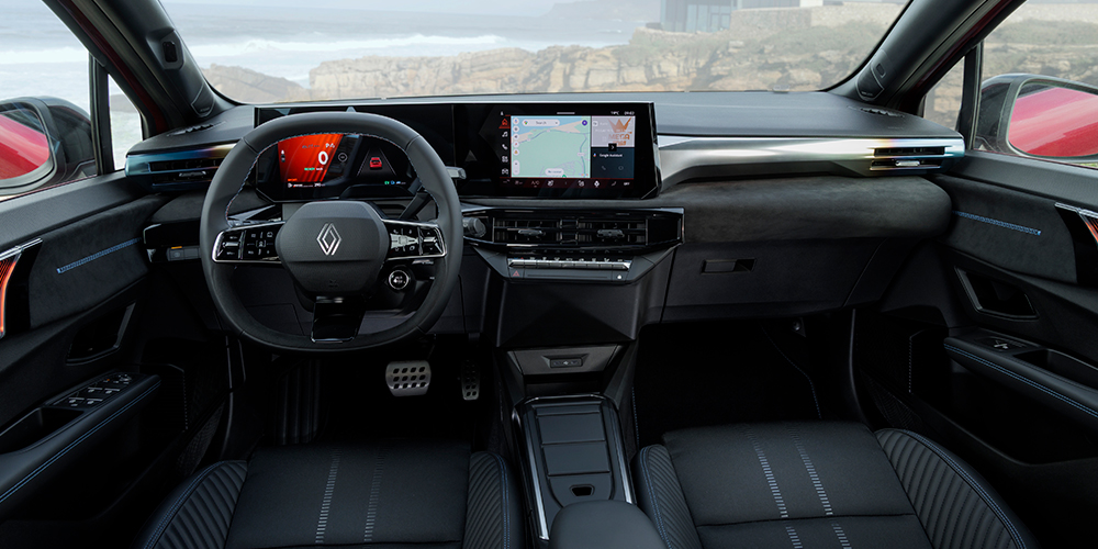 Kojelaudassa on kaksi 10,1-tuumaista näyttöä V-muodossa niin, että keskinäyttö on käännetty kohti kuljettajaa. Korkeampien varustetasojen kompakti ohjauspyörä on lainattu Renaultin suuremmista ja kalliimmista malleista. Hienon ulkonäkönsä lisäksi se on erittäin käytännöllinen, kun esimerkiksi multi-sense-valitsin on sijoitettu ohjauspyörään.