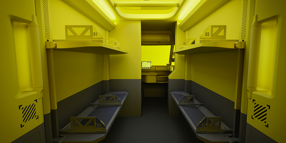 Liukuovi erottaa ohjaamon ja tavaratilan. Se sulkeutuu automaattisesti, kun kuljettaja palaa ohjaamoon tai poistuu ajoneuvosta, jolloin tavarat ovat aina katseilta turvassa. Lastaustilassa on neljä taitettavaa hyllyä. Jokainen yksityiskohta on suunniteltu sujuvaa ja turvallista käyttöä varten.